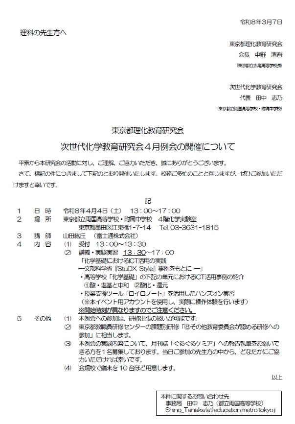 令和8年度 次世代化学教育研究会(SCN東京4月例会_化学基礎におけるICT活用の実践)